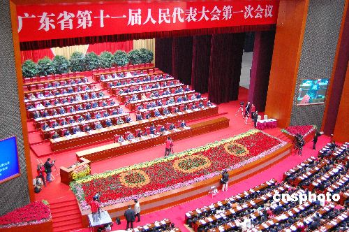 一月十七日,廣東省第十一屆人民代表大會第一次會議在廣州開幕。廣東省省長黃華華在會上作省政府工作報告。中新社發(fā) 柯小軍 攝