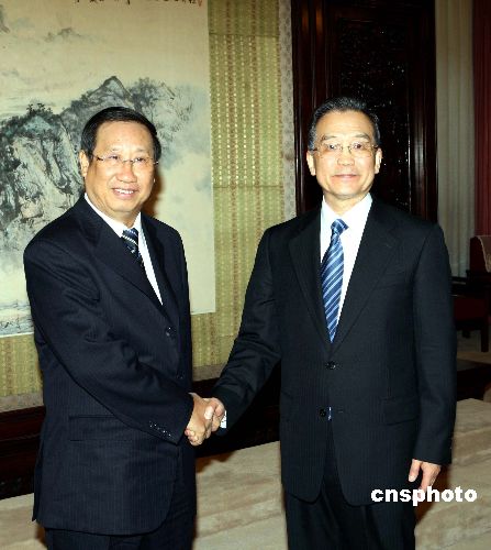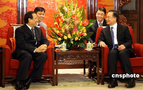 一月二十二日,中國總理溫家寶在北京會見來華出席中越雙邊合作指導(dǎo)委員會第二次會議的越南副總理兼外長范家謙。中新社發(fā) 任海霞 攝