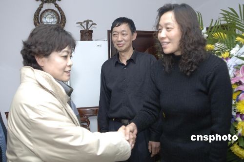中國(guó)著名作家浩然2月20日晨因冠心病引起心臟衰竭在北京辭世,享年76歲。中國(guó)作家協(xié)會(huì)主席鐵凝(左)前往其家中慰問(wèn)。浩然本名梁金廣,20世紀(jì)50年代開(kāi)始發(fā)表作品,1959年加入中國(guó)作家協(xié)會(huì),出版70余種著作。其代表作有文革時(shí)期發(fā)表的長(zhǎng)篇小說(shuō)《艷陽(yáng)天》、《金光大道》等。中新社發(fā) 徐曦弋 攝