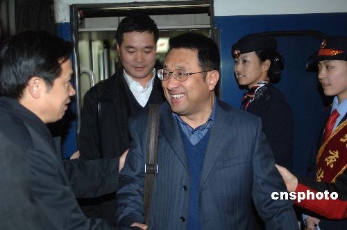 二月二十八日清晨,參加全國(guó)政協(xié)十一屆一次會(huì)議的吉林委員乘坐火車抵達(dá)北京,他們是首批抵京的京外委員。中新社發(fā) 廖攀 攝