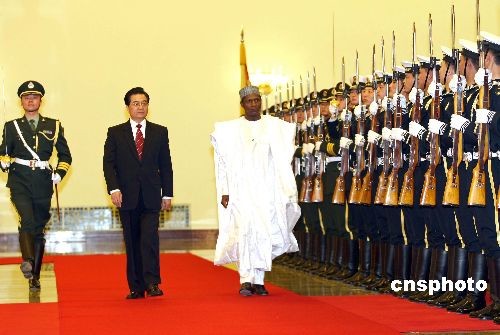 圖:胡錦濤舉行儀式歡迎尼日利亞聯(lián)邦共和國(guó)總統(tǒng)亞拉杜瓦