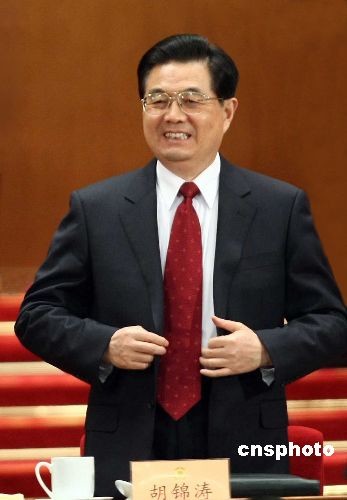 3月3日,全國(guó)政協(xié)十一屆一次會(huì)議在北京人民大會(huì)堂開(kāi)幕,胡錦濤出席會(huì)議。中新社發(fā) 盛佳鵬 攝