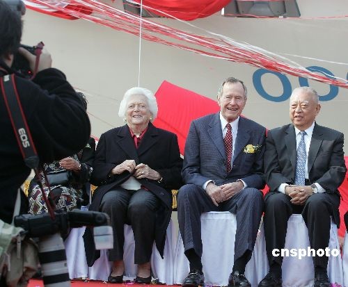 老布什夫婦、董建華在滬出席集裝箱船命名儀式