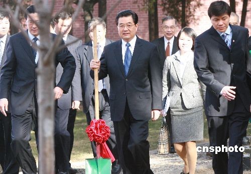 胡錦濤為中日青少年友好交流年活動(dòng)植樹