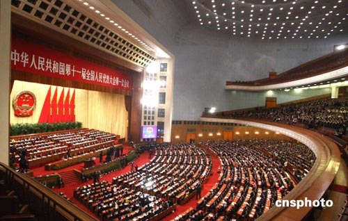 3月18日上午九時,十一屆全國人大一次會議在北京人民大會堂舉行閉幕會。中新社發(fā) 張宇 攝