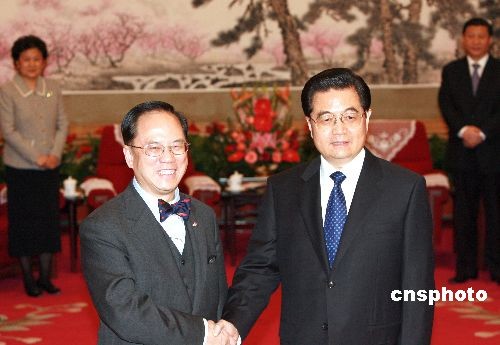 胡錦濤會(huì)見(jiàn)香港特別行政區(qū)行政長(zhǎng)官曾蔭權(quán)