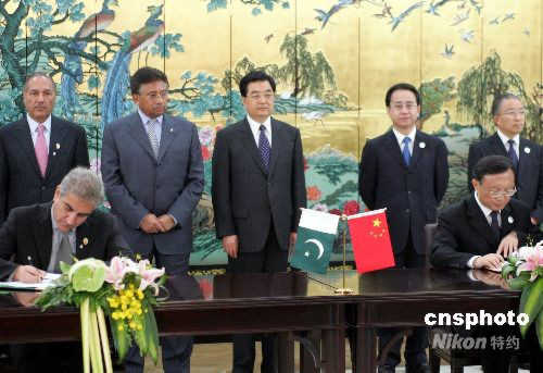 胡錦濤與穆沙拉夫出席中巴合作簽字儀式