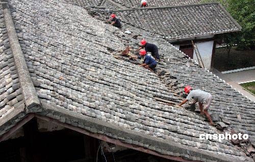 圖為施工隊伍正抓緊修復明月小學的部分教室。2008年5年12日四川汶川大地震波及華鎣市,震感強烈,致使該市學校大面積不同程度受災,據(jù)統(tǒng)計,有11所學校受災,受損面積8200平方米,損失680萬余元,致使近1500名學生不能正常行課。災情發(fā)生后,四川華鎣市委市政府立即組織市教育局和各學校迅速行動,啟動了應急預案,各級領導在第一時間分赴受災學校指揮指導抗災救災工作,確保了師生生命財產(chǎn)安全,無一例地震傷亡事故發(fā)生;同時,他們在組織專家鑒定后,立即籌集資金,組織施工隊伍修復損壞不大的教室,使學生盡快復課。