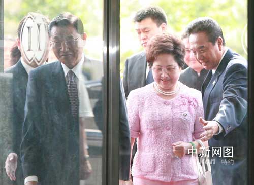 6月11日,海協(xié)會(huì)會(huì)長(zhǎng)陳云林在臺(tái)灣海峽交流基金會(huì)董事長(zhǎng)江丙坤下榻酒店門口迎接海基會(huì)代表團(tuán)一行。作者:廖文靜