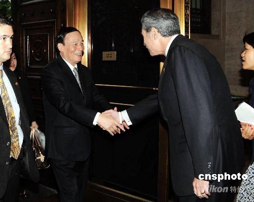 6月16日,中國國家主席胡錦濤的特別代表、中國國務(wù)院副總理王岐山率團(tuán)到達(dá)美國首都華盛頓,參加即將于17日舉行的第四次中美戰(zhàn)略經(jīng)濟(jì)對話。圖為美國商務(wù)部長古鐵雷斯在美國商會迎接王岐山副總理。中新社發(fā) 邱江波 攝