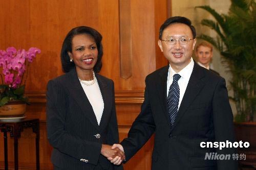 6月29日,中國外交部部長楊潔篪在北京釣魚臺國賓館與美國國務(wù)卿賴斯舉行會談。中新社發(fā) 盛佳鵬 攝