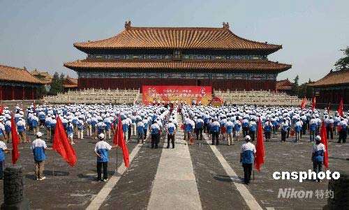 北京交通秩序維護社會志愿者全面上崗儀式在太廟舉行。