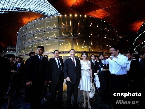 8月10日,海協(xié)會(huì)會(huì)長(zhǎng)陳云林陪同中國(guó)國(guó)民黨名譽(yù)主席連戰(zhàn)參觀(guān)國(guó)家大劇院。隨后他們觀(guān)看了丹麥皇家芭蕾舞團(tuán)經(jīng)典舞劇《仙女》、《拿波里》片段。中新社發(fā) 廖攀 攝