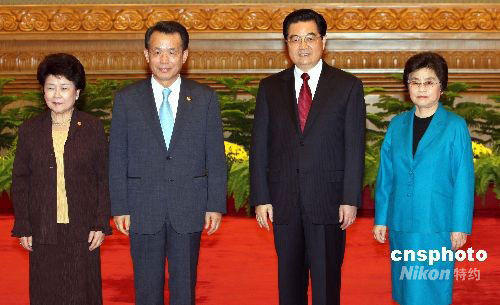 胡錦濤夫婦與韓國總理韓升洙夫婦合影。