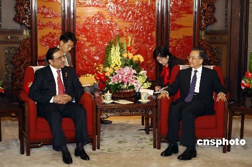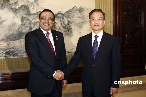 10月16日,中國國務院總理溫家寶在北京中南海紫光閣會見巴基斯坦總統(tǒng)扎爾達里。中新社發(fā) 盛佳鵬 攝