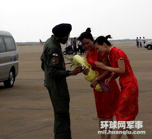 圖為一位抵達(dá)珠海的印度空軍軍官為禮儀小姐拍照留念。攝影:小峰