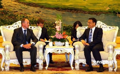 11月7日,中國(guó)國(guó)務(wù)院副總理李克強(qiáng)在北京人民大會(huì)堂會(huì)見(jiàn)俄羅斯總統(tǒng)駐遠(yuǎn)東聯(lián)邦區(qū)全權(quán)代表薩福諾夫。中新社發(fā) 廖文靜 攝