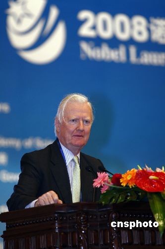 1996年獲得諾貝爾經(jīng)濟學(xué)獎獲得者詹姆斯-莫里斯教授在開幕式上致辭。