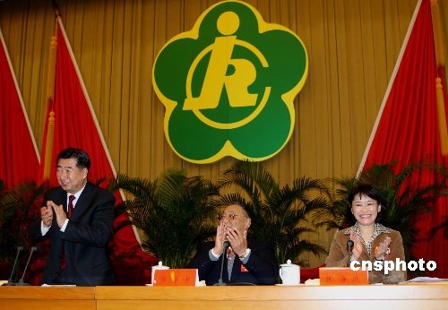 11月13日,在北京京西賓館舉行的中國殘疾人聯(lián)合會第五次全國代表大會上,鄧樸方當(dāng)選為中國殘聯(lián)名譽主席,張海迪當(dāng)選為中國殘聯(lián)主席。中新社發(fā) 史利 攝