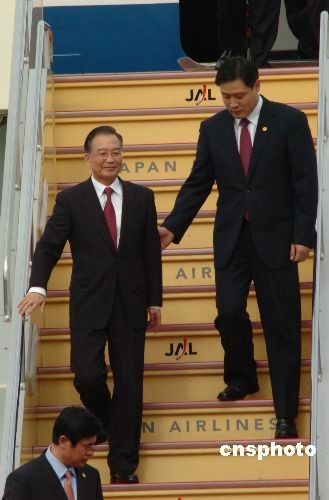 當(dāng)?shù)貢r(shí)間12月13日上午11點(diǎn)20分許,中國總理溫家寶抵達(dá)福岡機(jī)場準(zhǔn)備出席即將舉行的中日韓三國領(lǐng)導(dǎo)人會議,受到數(shù)十位當(dāng)?shù)厝A人華僑的熱烈歡迎。中新社發(fā) 朱沿華 攝
