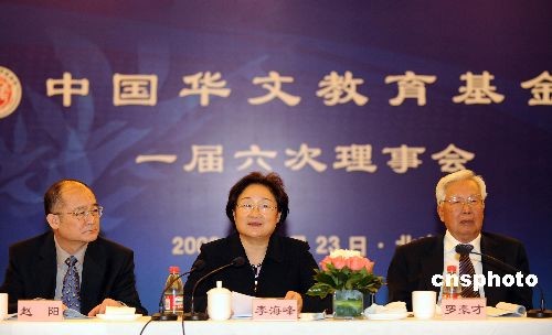 十二月二十三日,國僑辦主任李海峰(中)、全國政協(xié)原副主席羅豪才(右)、國僑辦副主任趙陽出席中國華文教育基金會理事會。當日,中國華文教育基金會一屆六次理事會在北京召開,會議選舉第十一屆全國政協(xié)委員、中國海外交流協(xié)會副會長林文肯任中國華文教育基金會理事長。張偉超由于年齡原因,不再擔任理事長。中新社發(fā) 廖攀 攝