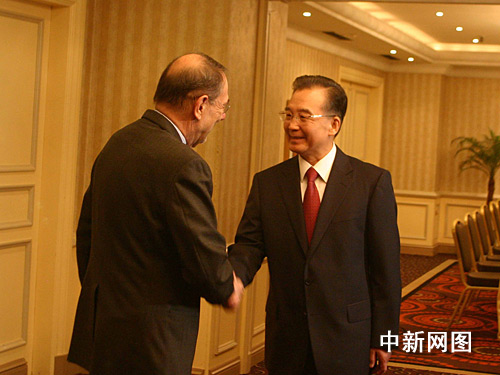 正在這里對(duì)歐盟總部進(jìn)行正式訪問(wèn)的中國(guó)總理溫家寶,當(dāng)?shù)貢r(shí)間一月三十日上午在下榻飯店會(huì)見(jiàn)了歐盟理事會(huì)秘書(shū)長(zhǎng)兼共同外交與安全政策高級(jí)代表索拉納(左)。雙方對(duì)中歐關(guān)系重要性均給予高度肯定。張朔 攝