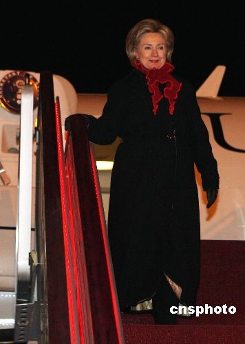 2月20日晚7時(shí)40分,美國(guó)新任國(guó)務(wù)卿希拉里·克林頓乘坐專(zhuān)機(jī)抵達(dá)北京首都國(guó)際機(jī)場(chǎng),開(kāi)始對(duì)中國(guó)進(jìn)行訪問(wèn)。中國(guó)是希拉里·克林頓此次亞洲“傾聽(tīng)之旅”的最后一站,也被外界認(rèn)為是她此次訪問(wèn)的“壓軸戲”。中新社發(fā) 任晨鳴 攝