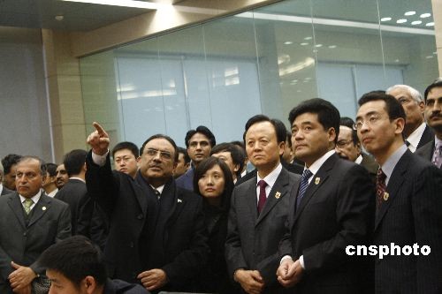 2月22日,應(yīng)邀訪華的巴基斯坦總統(tǒng)扎爾達(dá)里,在中國(guó)三峽總公司總經(jīng)理李永安等陪同下參訪了三峽工程,并希望通過(guò)這次考察訪問(wèn),推動(dòng)巴基斯坦與湖北在水電開(kāi)發(fā)、水利建設(shè)等領(lǐng)域的合作。中新社發(fā) 艾啟平 攝