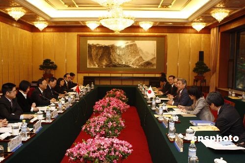 2月28日,中國外交部部長楊潔篪在北京釣魚臺國賓館與日本外相中曾根弘文舉行會談。中新社發(fā) 盛佳鵬 攝