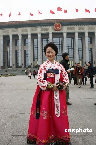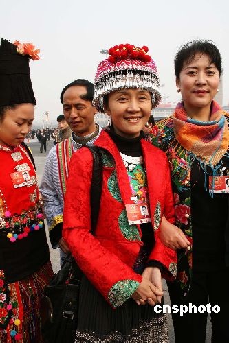 3月3日,全國政協(xié)十一屆二次會議在北京人民大會堂開幕,少數(shù)民族政協(xié)委員在人民大會堂前留影。中新社發(fā) 金立冬 攝