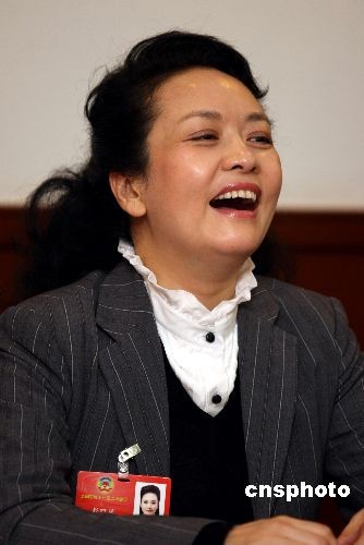 3月4日,全國政協(xié)十一屆二次會議進(jìn)行分組討論,彭麗媛被青聯(lián)界其他委員的風(fēng)趣發(fā)言逗樂。中新社發(fā) 傅丹丹 攝