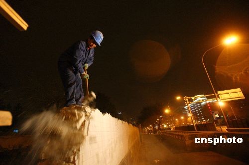 3月20日23時左右,長安街道路大修工程正式啟動。據(jù)悉,這是十余年來長安街首次大修,預(yù)計8月30日完工。伴隨此次道路大修,將同步進(jìn)行交通工程、綠化整治和公交優(yōu)化,并對建國門立交橋進(jìn)行橋面翻新和結(jié)構(gòu)加固,對沿線多處地下通道出入口進(jìn)行延長調(diào)整,實現(xiàn)長安街復(fù)興門至建國門路段五上五下雙向十車道的規(guī)劃。為最大限度減少施工對城市交通及市民的影響,施工主要集中在夜間進(jìn)行,白天交通不受影響。中新社發(fā) 富田 攝