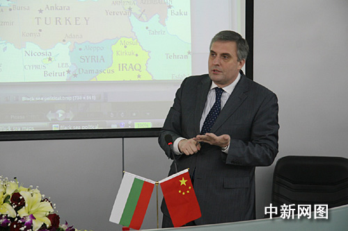 卡爾芬還為師大學子帶來題為《黑海區(qū)域的地位以及保加利亞對該地區(qū)穩(wěn)定與發(fā)展的貢獻》的精彩演講。華師 攝