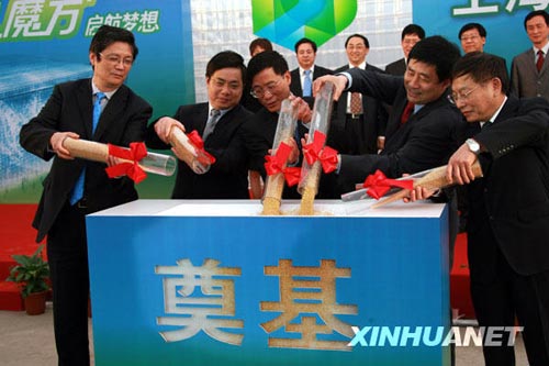 4月25日,2010年上海世博會(huì)上海企業(yè)聯(lián)合館在世博園企業(yè)館展區(qū)舉行開工儀式。以“城市,升華夢(mèng)想”為主題的上海企業(yè)聯(lián)合館,由上海市國資委下屬的30多家大中型國有企業(yè)聯(lián)合出資建造,是一座獨(dú)具特色的生態(tài)智能建筑。它采用可循環(huán)利用的再生塑料和太陽能熱水發(fā)電技術(shù),場(chǎng)地范圍內(nèi)的雨水將得到回收,經(jīng)過處理后作為場(chǎng)館內(nèi)的日常用水和“噴霧”。