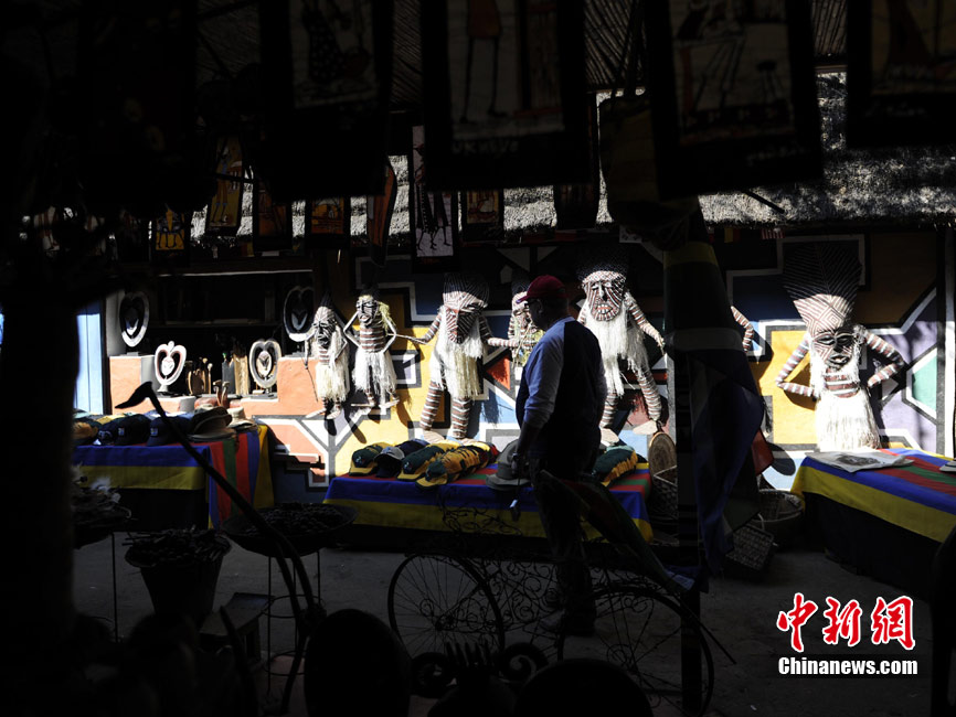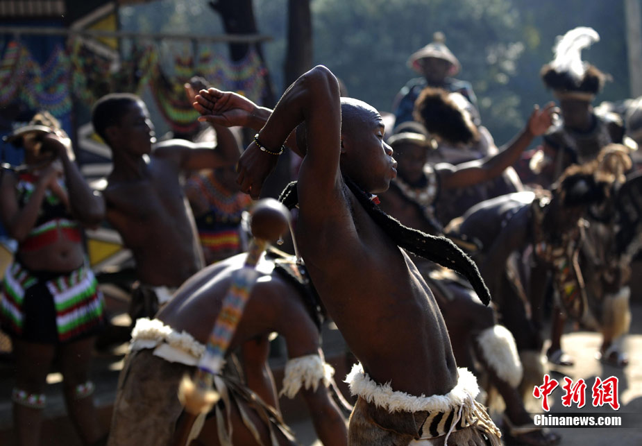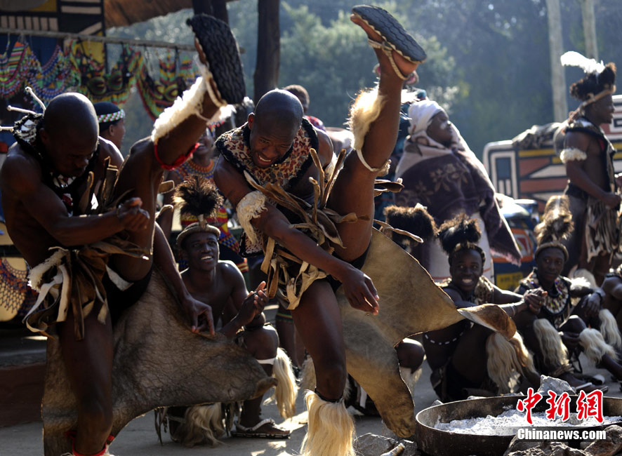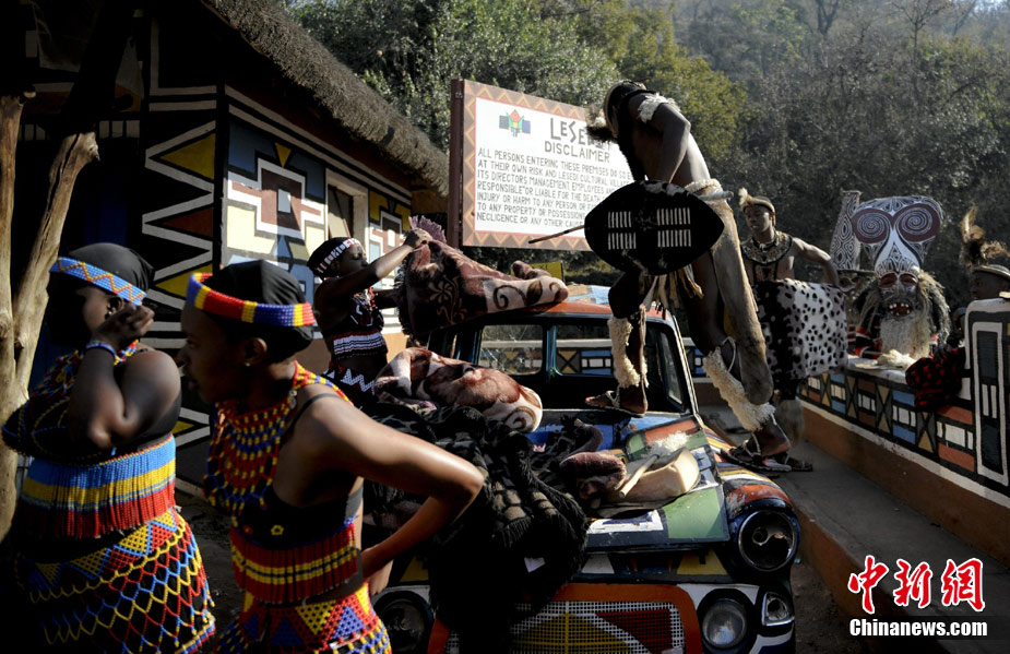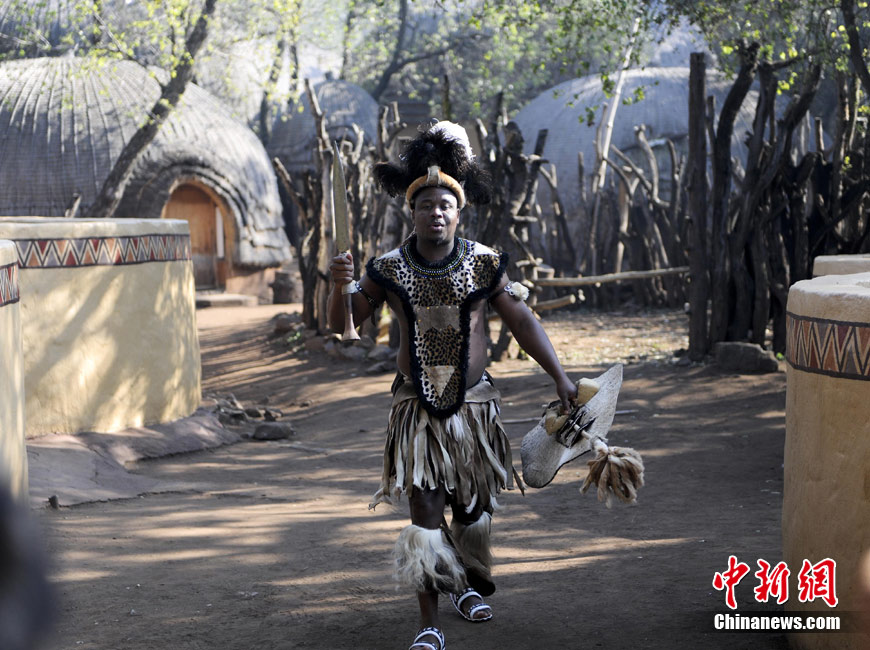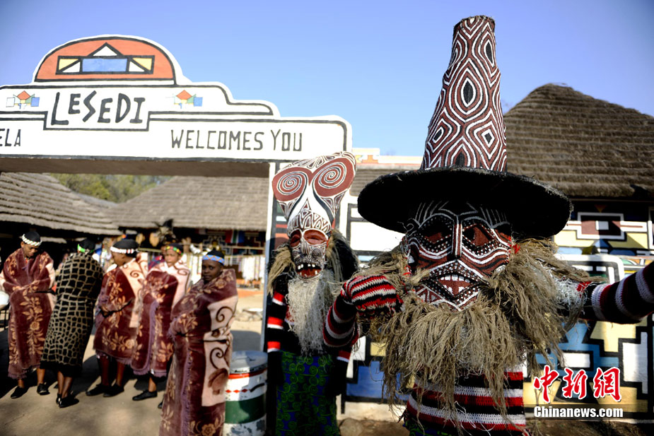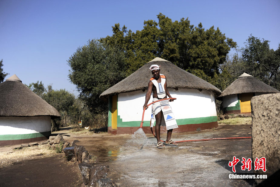 在南非約堡郊外,號稱“南非文化窗口”的萊賽迪(Lesedi)民俗村,聚居著南非最重要的四個部落。這里有著非洲土著餐飲,還有著原生態(tài)的舞蹈表演,當(dāng)客人來訪,村民就會盛裝在村口迎接。圖為萊賽迪民俗村。 中新社記者 廖攀攝