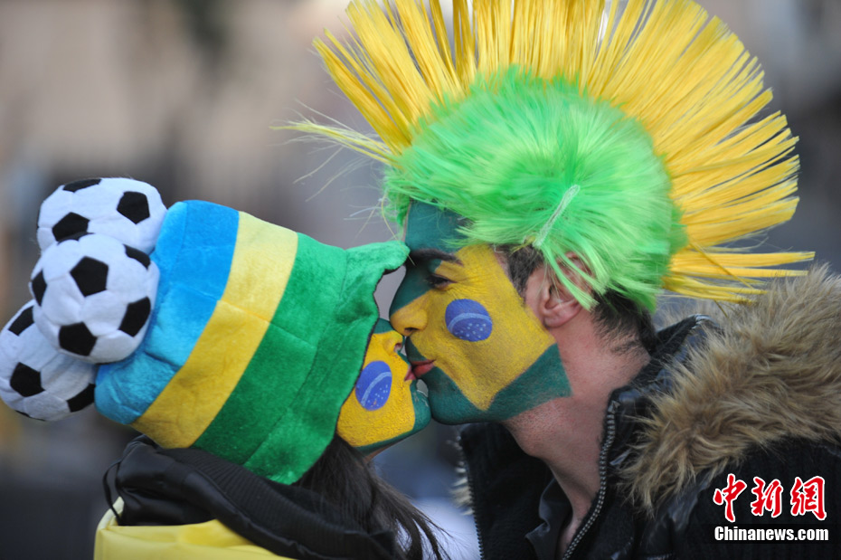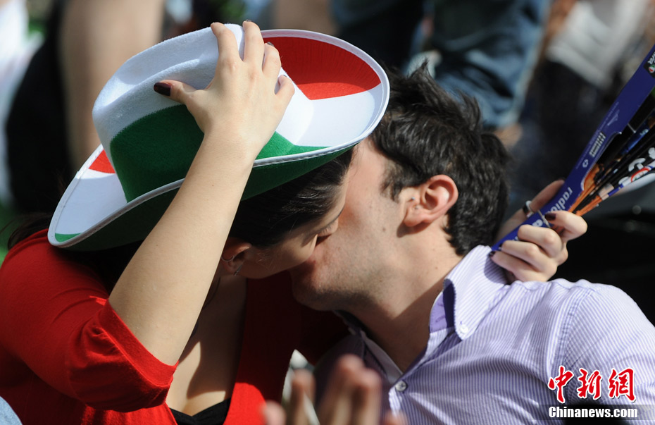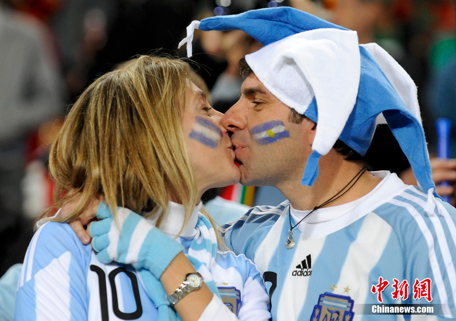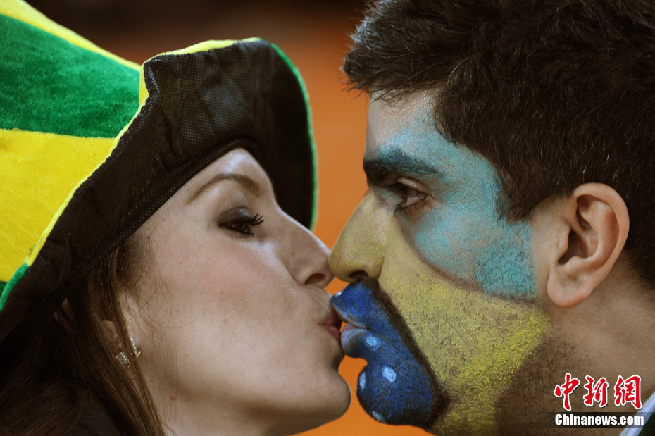 足球讓女人走開(kāi)不是真理,與愛(ài)人共同享受足球之魅才是幸福。看臺(tái)上愛(ài)侶的濃情蜜意著實(shí)讓人羨慕,情到深處的深深一吻,獻(xiàn)給愛(ài)人,也獻(xiàn)給令人癡迷的世界杯。中新社記者 廖攀 攝