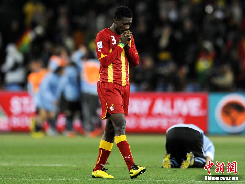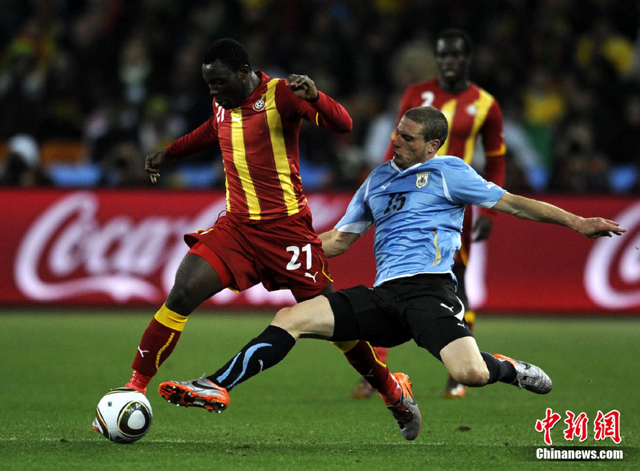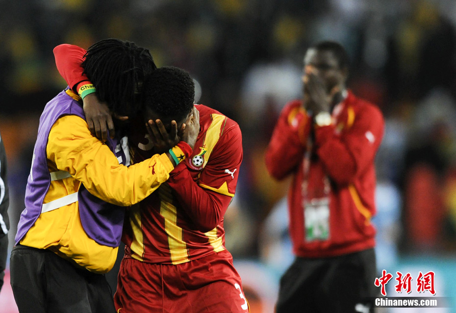 北京時(shí)間7月3日凌晨2:30,南非世界杯進(jìn)行了1/4決賽的第二場(chǎng)爭(zhēng)奪,由烏拉圭在約翰內(nèi)斯堡的足球城球場(chǎng)迎戰(zhàn)加納隊(duì)。120分鐘時(shí)間內(nèi),雙方憑借弗蘭和蒙塔里的進(jìn)球,1-1戰(zhàn)成平局。在點(diǎn)球大戰(zhàn)中,烏拉圭4-2擊敗對(duì)手,晉級(jí)半決賽。 中新社記者 廖攀 攝
