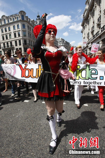當?shù)貢r間7月3日,英國倫敦舉行年度同性戀大游行。
