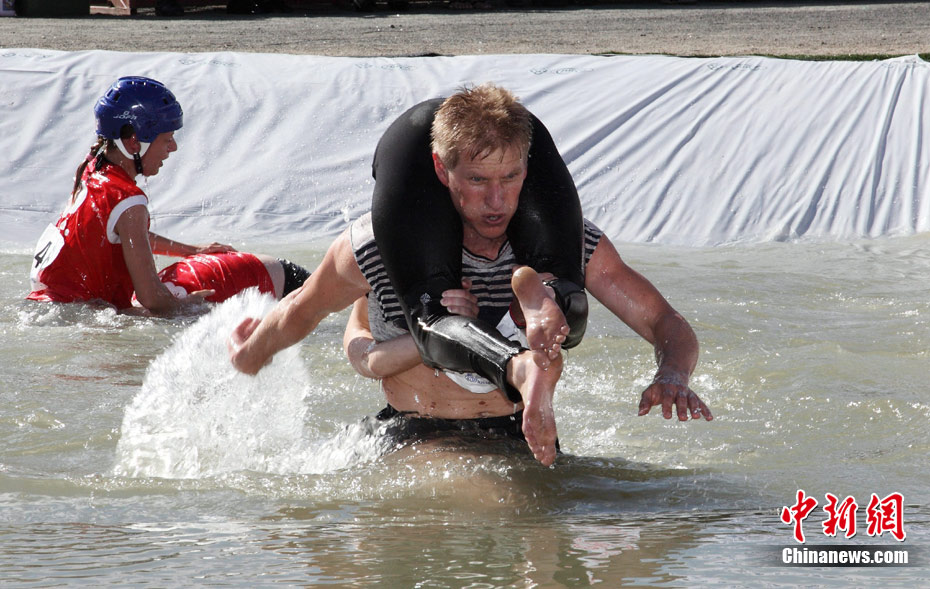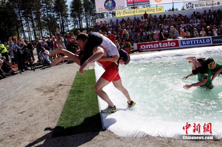 芬蘭舉行背老婆趟泳池大賽