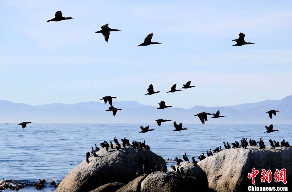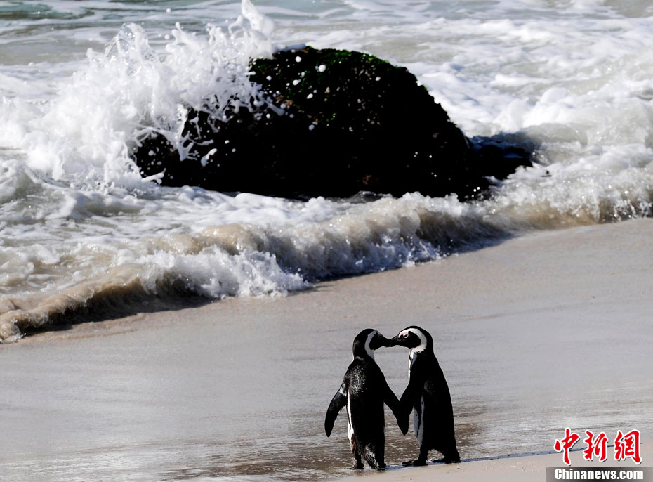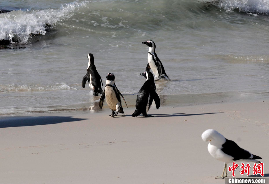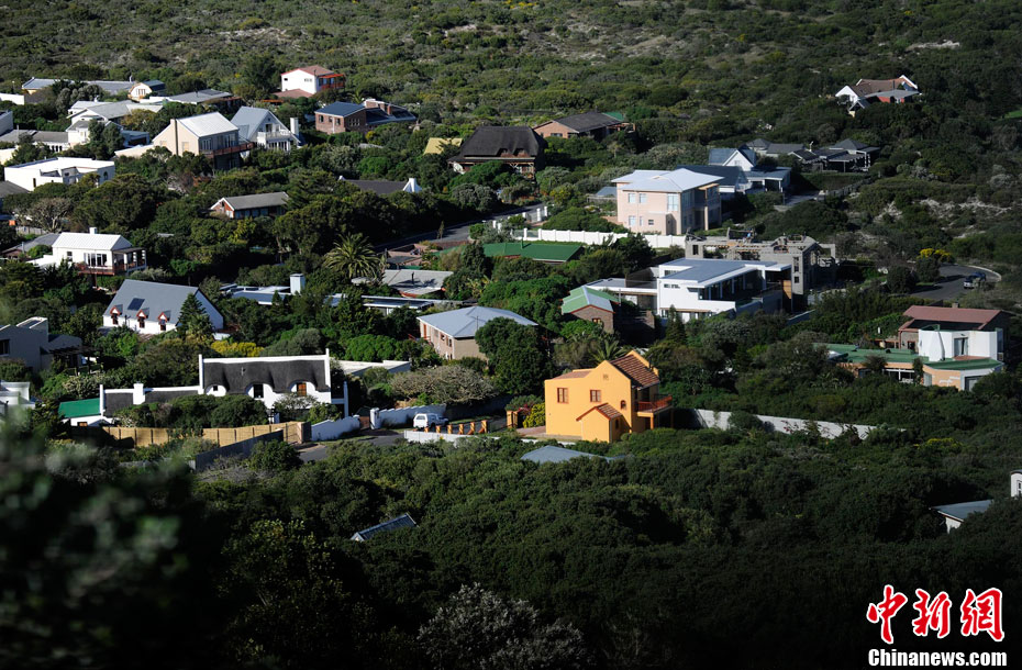 南非開普敦西蒙小鎮(zhèn)和生長(zhǎng)在這里的企鵝。中新社記者 廖攀 攝