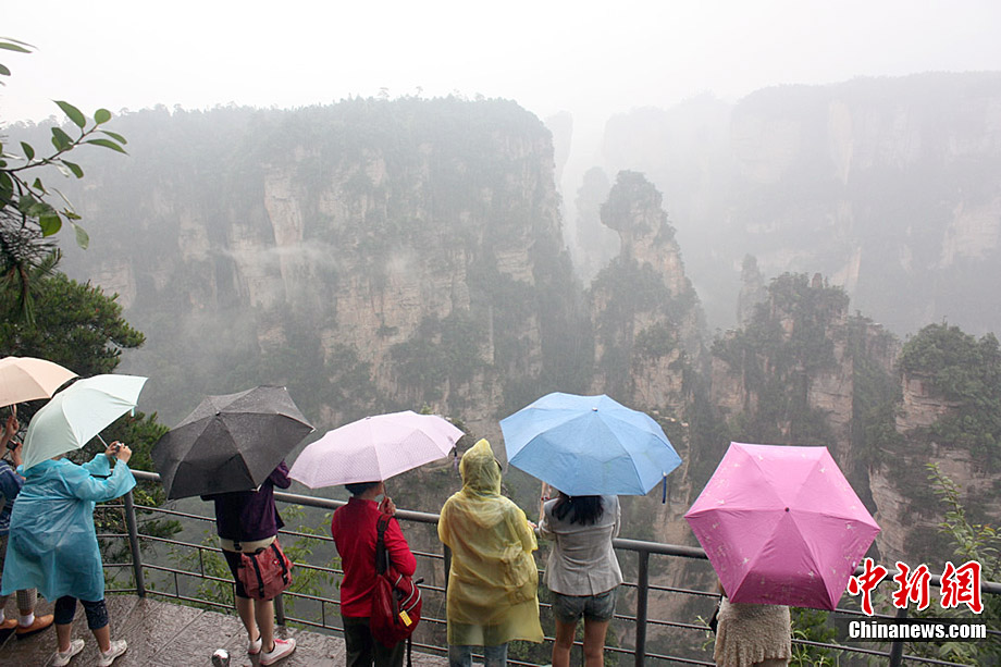 7月9日至12日連續(xù)不斷的大雨天氣,給在張家界觀光的中外游客帶來(lái)一些不便,但絲毫沒(méi)有影響游客的興致。雨中張家界形成的云海、瀑布風(fēng)景美輪美奐,蔚為壯觀,別具韻味,每天令上萬(wàn)名游客陶醉其中。鄧道理 攝