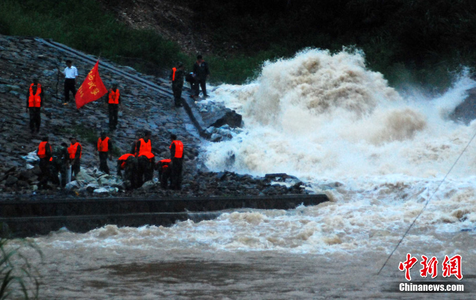 中新網(wǎng)都昌7月14日電(胡國林)14日,受強(qiáng)降雨襲擊,江西九江市都昌大港鎮(zhèn)梅溪水庫水位超過泄洪道1米左右,啟閉設(shè)備出現(xiàn)失靈,洪水如猛獸般狂瀉入下,部分村莊和數(shù)千畝農(nóng)田被淹。 險(xiǎn)情發(fā)生后,當(dāng)?shù)胤姥床块T立即組織抗洪搶險(xiǎn)突擊隊(duì),武警官兵和當(dāng)?shù)厝罕娒爸kU(xiǎn),拋石加固堤壩,防止洪庫潰堤,下游數(shù)千名村民已被安全轉(zhuǎn)移。