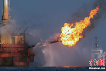 7月14日,美國,墨西哥灣漏油的清理工作繼續(xù)進(jìn)行,燃燒泄漏原油的力度繼續(xù)加大。