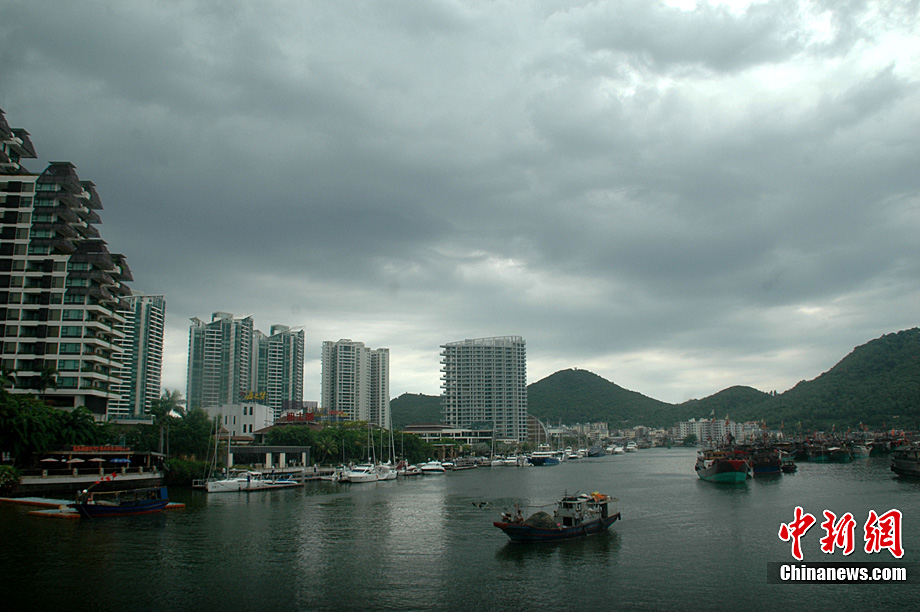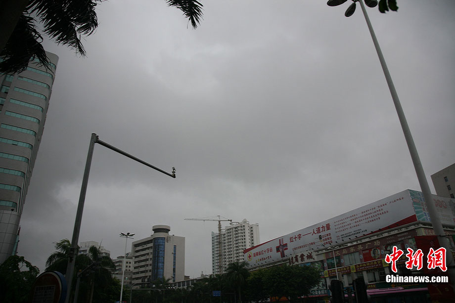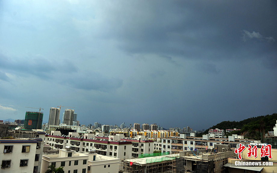 強(qiáng)熱帶風(fēng)暴“康森”來襲 三亞上空烏云密布
