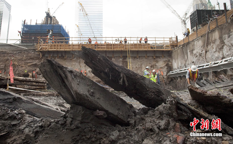 近日,美國紐約世貿(mào)中心遺址發(fā)現(xiàn)了一艘據(jù)信是18世紀的古船殘骸。報道稱,正在當?shù)匦藿ㄐ率蕾Q(mào)大樓的建筑工人意外發(fā)現(xiàn)了這艘古船?脊艑W家表示,這艘長約32英尺的古船可能是當年用來運料填充哈德遜河。