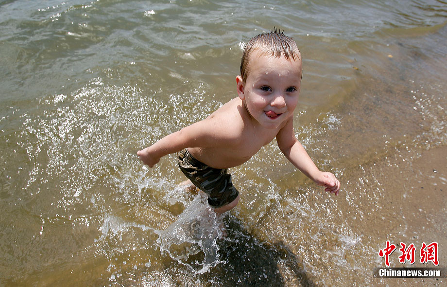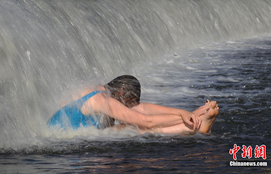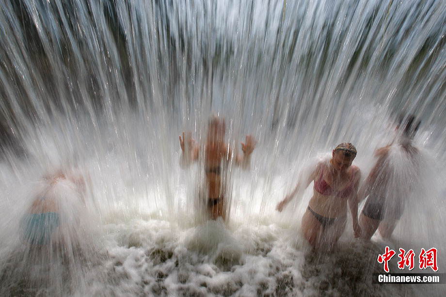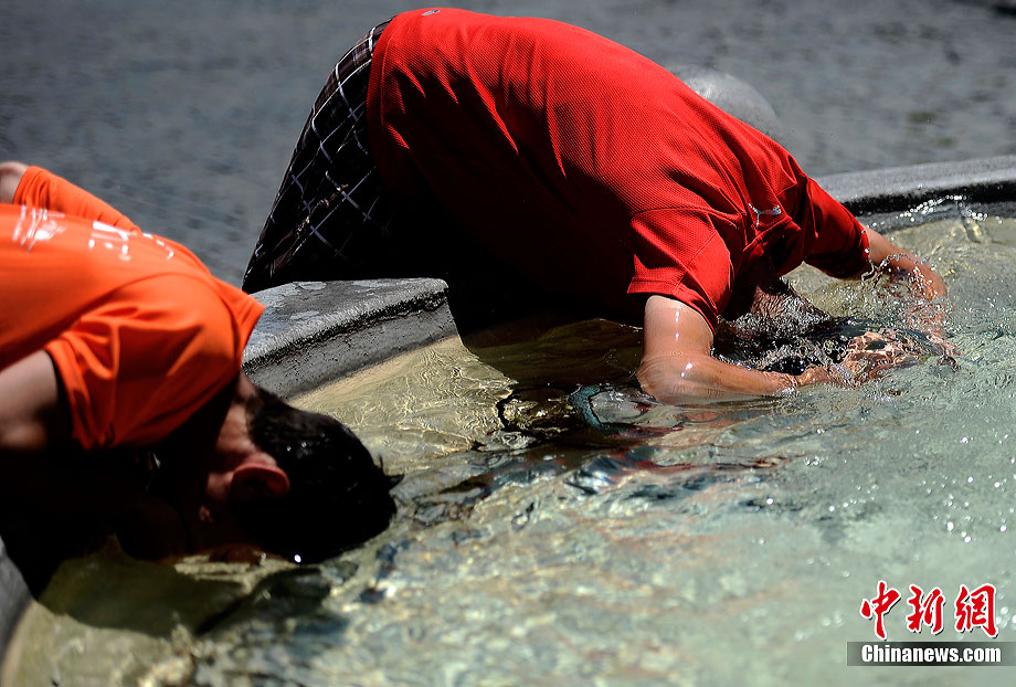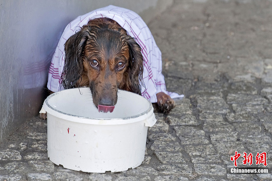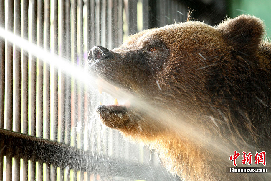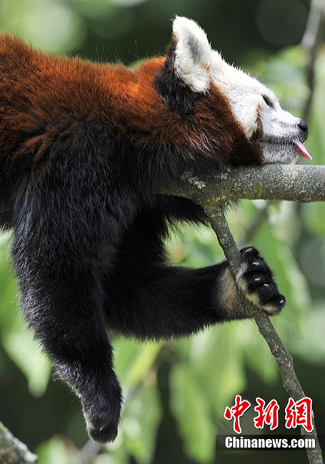 7月14日,德國克龍貝格動物園內(nèi)的小熊貓忍受著酷熱。