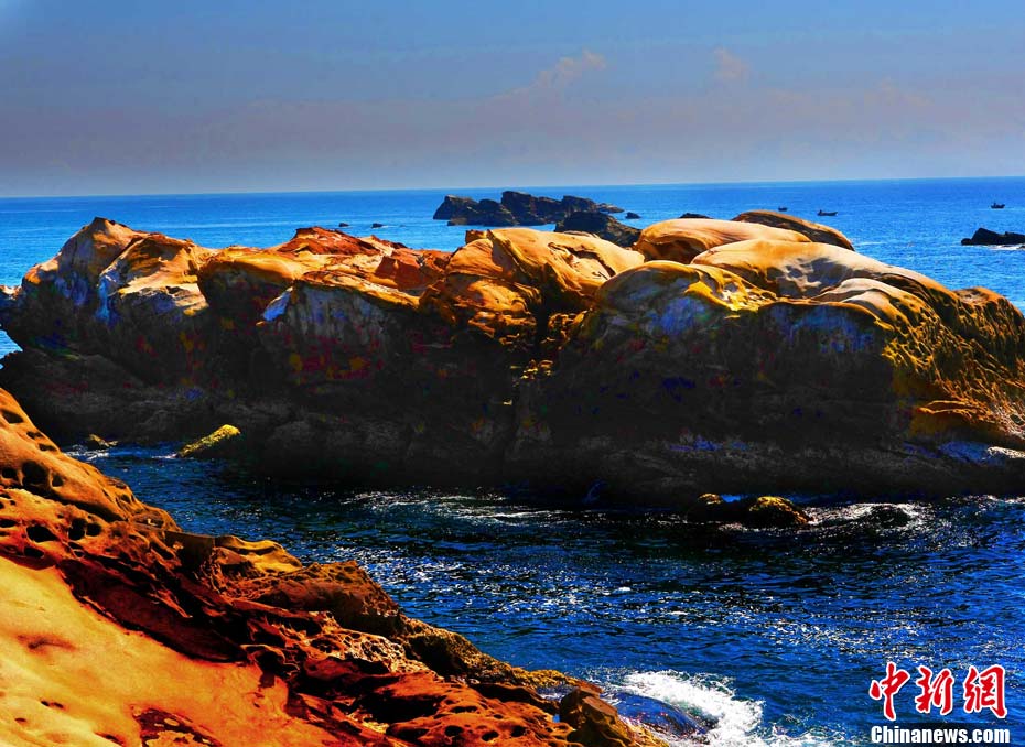 進(jìn)入7月中下旬的臺(tái)灣野柳地質(zhì)公園旅游區(qū)游人大增,觀光客游趣濃厚的野柳地質(zhì)公園是一處突出海面的岬角,受海浪侵蝕、巖石風(fēng)化等作用,形成蜂窩巖、菌狀巖、姜狀巖、臘燭臺(tái)等各種各樣的奇特景觀。中新社記者 宋吉河 攝