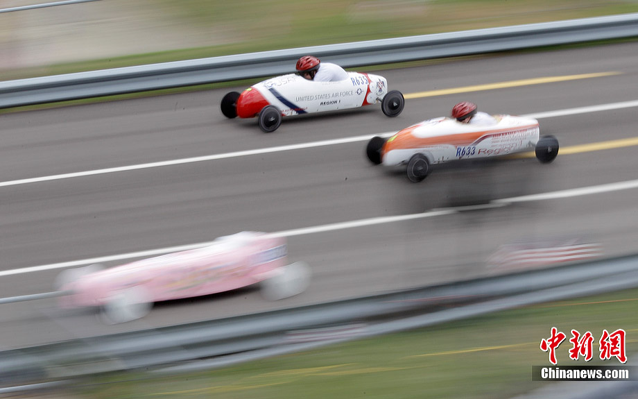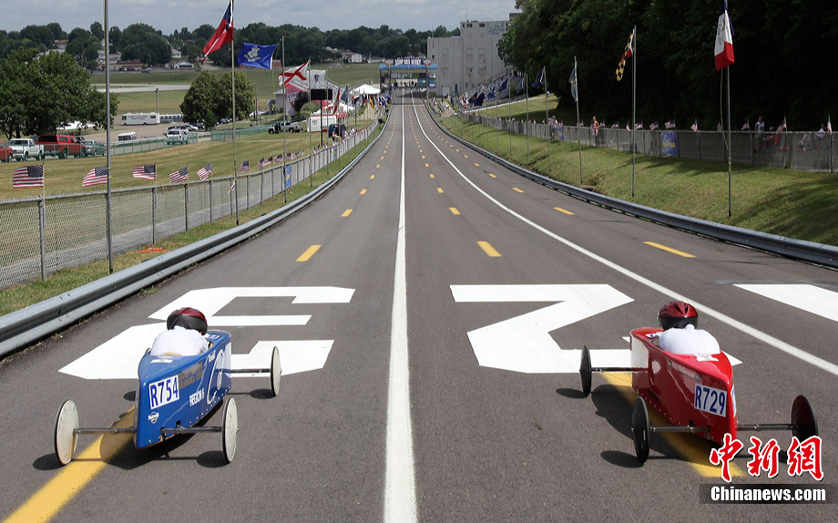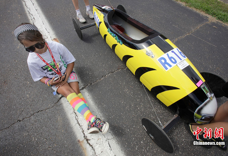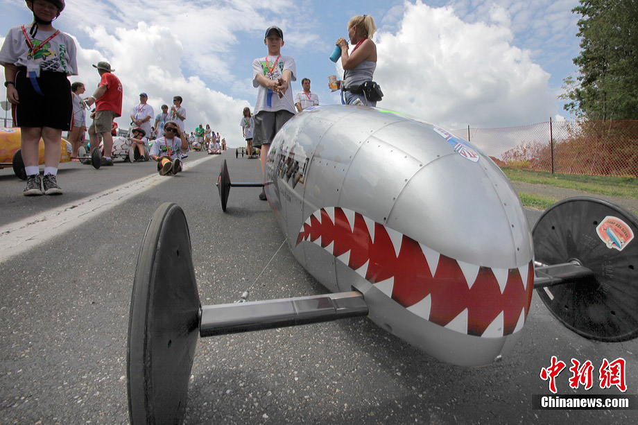 當?shù)貢r間7月21日,美國俄亥俄州舉行了第73屆全美“肥皂盒”小車大賽。來自美國各地以及加拿大、日本、德國和新西蘭的約500名車手攜帶自己的愛車參賽!胺试砗小毙≤嚊]有任何動力裝置,其主要設計目標是減少空氣阻力和摩擦力,以便讓小車的速度達到最高。