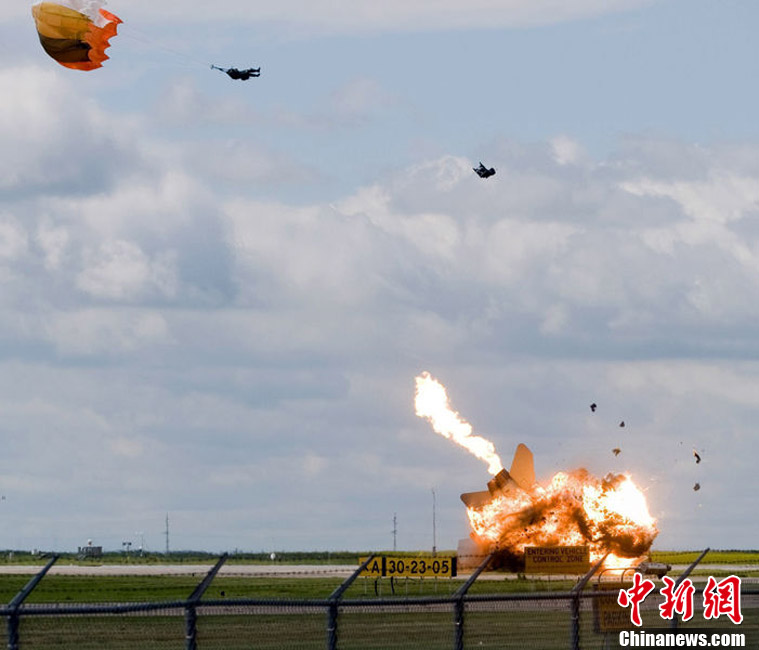 7月23日,在加拿大阿爾伯塔萊斯布里奇機場,F(xiàn)/A-18C戰(zhàn)斗機飛行員彈射逃生。飛行員已被送到當(dāng)?shù)匾患裔t(yī)院,是否受傷尚不清楚。事故原因正在調(diào)查中。圖為戰(zhàn)機墜地爆炸瞬間。
