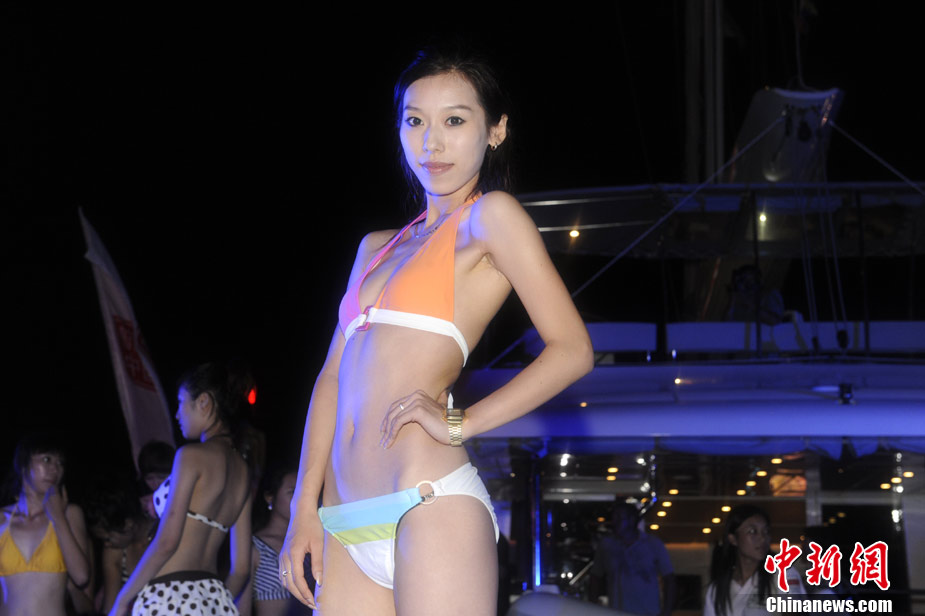 7月25日,2010青島國(guó)際海洋節(jié)盛大開幕。當(dāng)晚,在青島奧帆中心的游艇上舉行了一場(chǎng)活力四射的比基尼派對(duì)。中新網(wǎng)記者 田博川 攝
